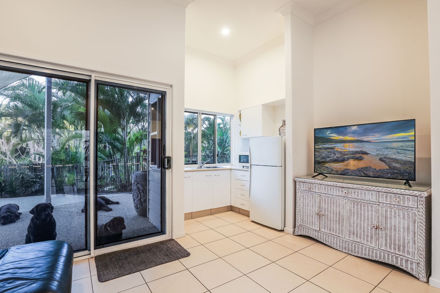Downstairs – featuring the 2nd lounge tv area & enclosed furnished courtyard - the perfect place to escape for some me time. Kitchenette with fridge freezer & utensils, , Three (3) Bedrooms, Three (3) bathrooms. Patio, fenced landscaped yard & in-ground resort style pool.