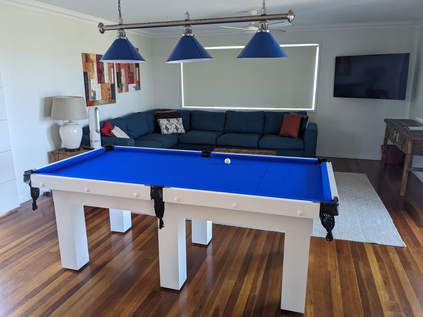 Second lounge/rumpus room with pool table, flat screen TV, DVD player, and assorted games