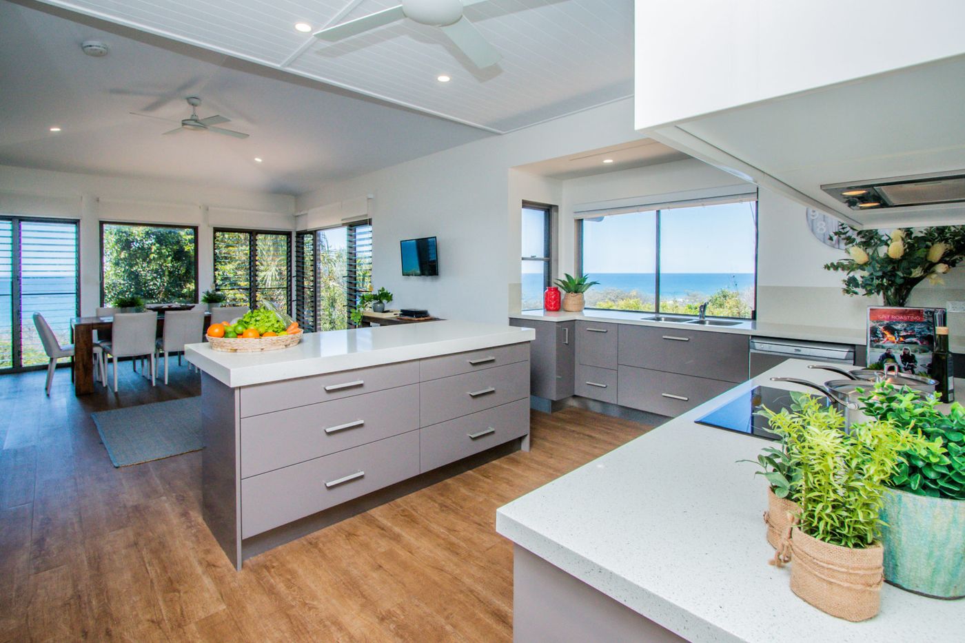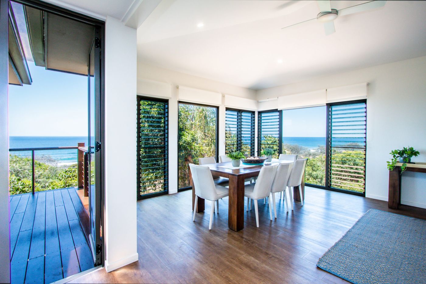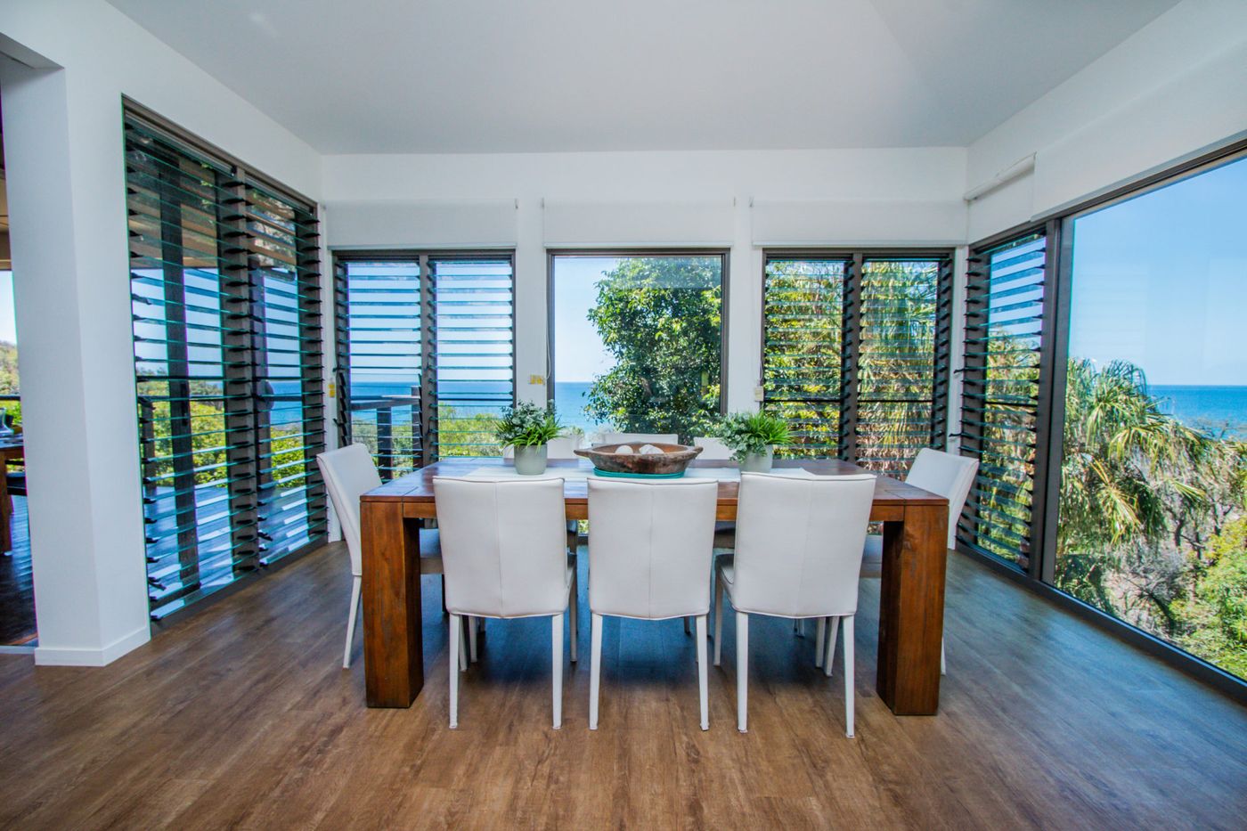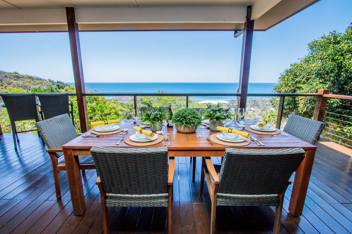 A Spectacular holiday home located amongst a pristine coastal landscape, capturing impressive vast ocean views looking towards the stunning & remote Red Rock Beach. This property offers the benefit of being able to stroll directly onto one of many deserted & remote beaches in the conservation reserve of Sunrise 1770 private estate plus is completely private with only the bushland surrounding the home. Wow Factor - Ocean Views , beach access & privacy plus free wifi.