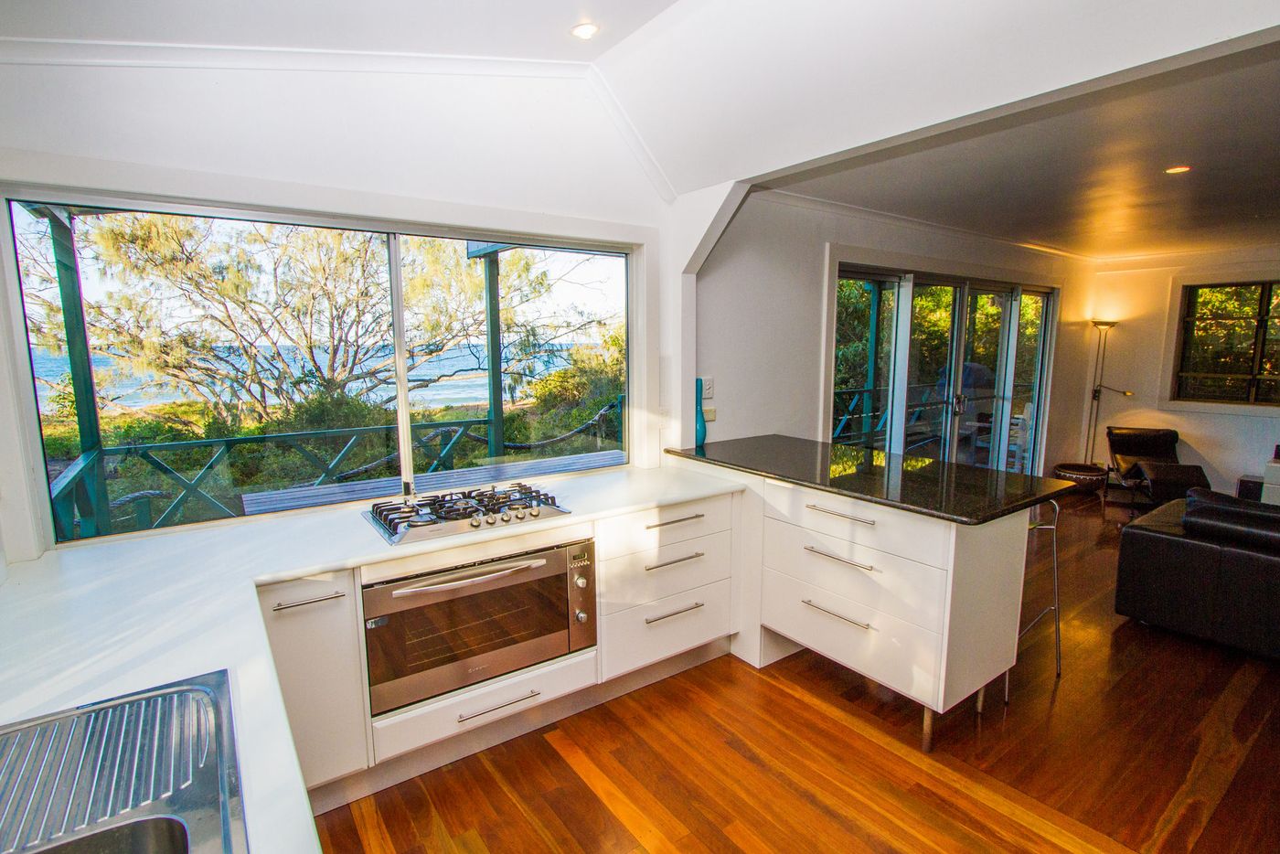 The beachfront bungalow has an open plan fully self- contained kitchen, dining and lounge with internal bedroom providing 2 single beds, plus an additional bedroom with queen sized bed, main bathroom and laundry accessible separate via the back veranda. The property is air conditioning in both the house and main bedroom