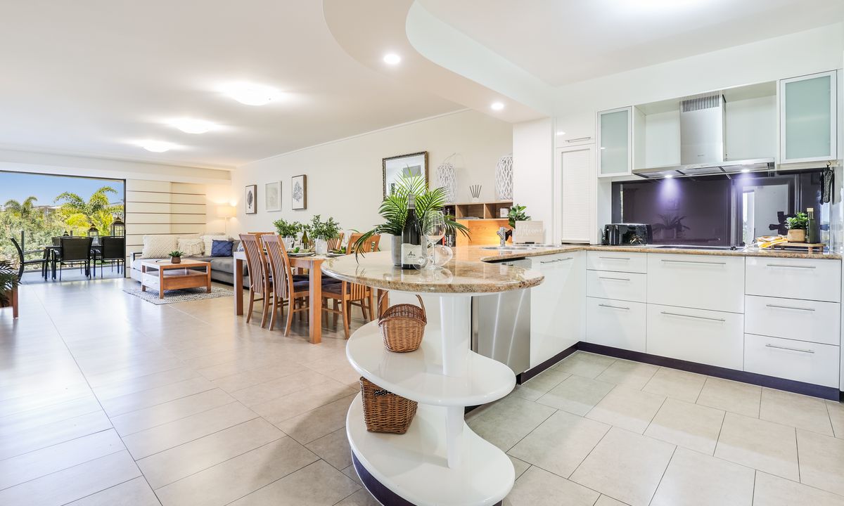 Overlooking the resort’s sparkling pool, this spacious and stylish apartment offers the perfect coastal retreat for families and friends alike.