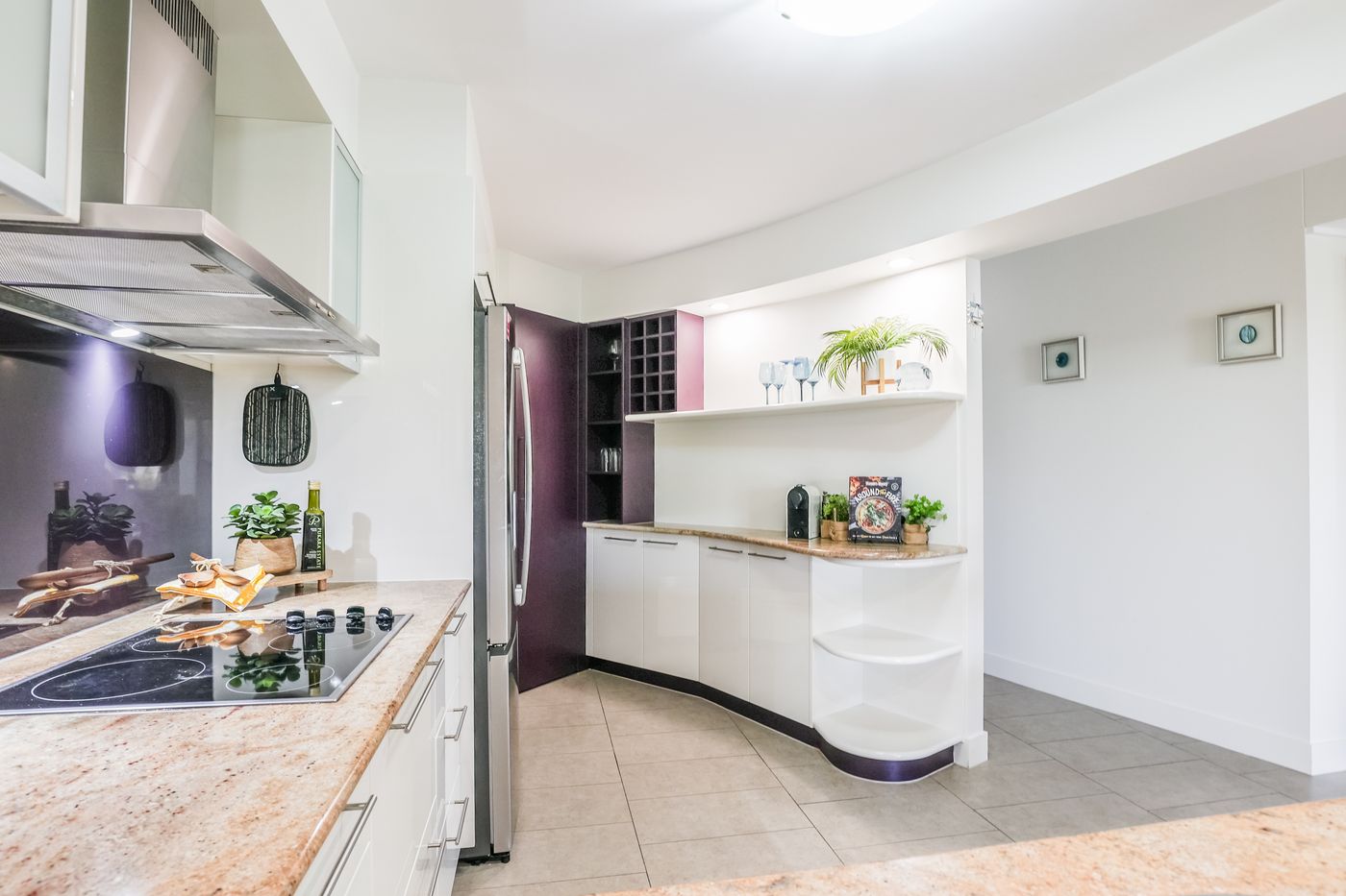 Fully equipped kitchen with modern European appliances, including a dishwasher