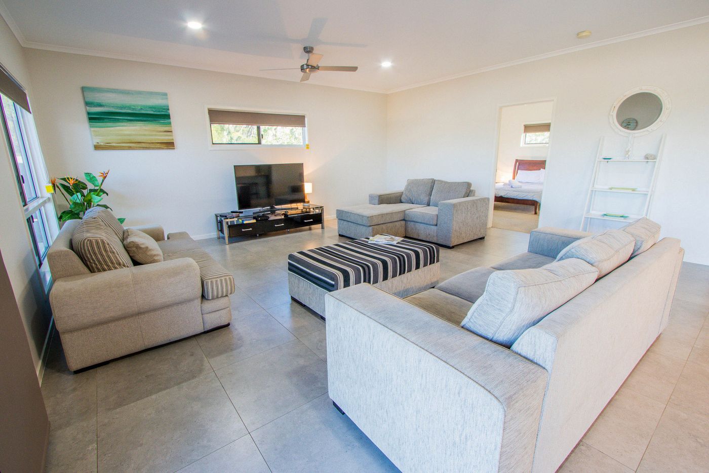 Family of 5, 3 kids under 13 and our little dog enjoyed an awesome stay here. The property is spacious and cool, receiving a lovely sea breeze all day. We spent a lot of time in the large pool and enjoyed many walks on the beach which is just 100 metres away along a sandy track. We walked along the beach to reach the shopping centre for fish and chips, sushi, pizza and gelato (not all at the same time) and it was all delicious. Less that 5 mins up the road by car to 1770 and Bustard Head too.