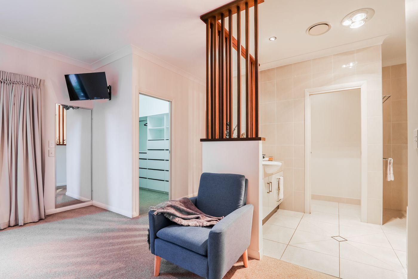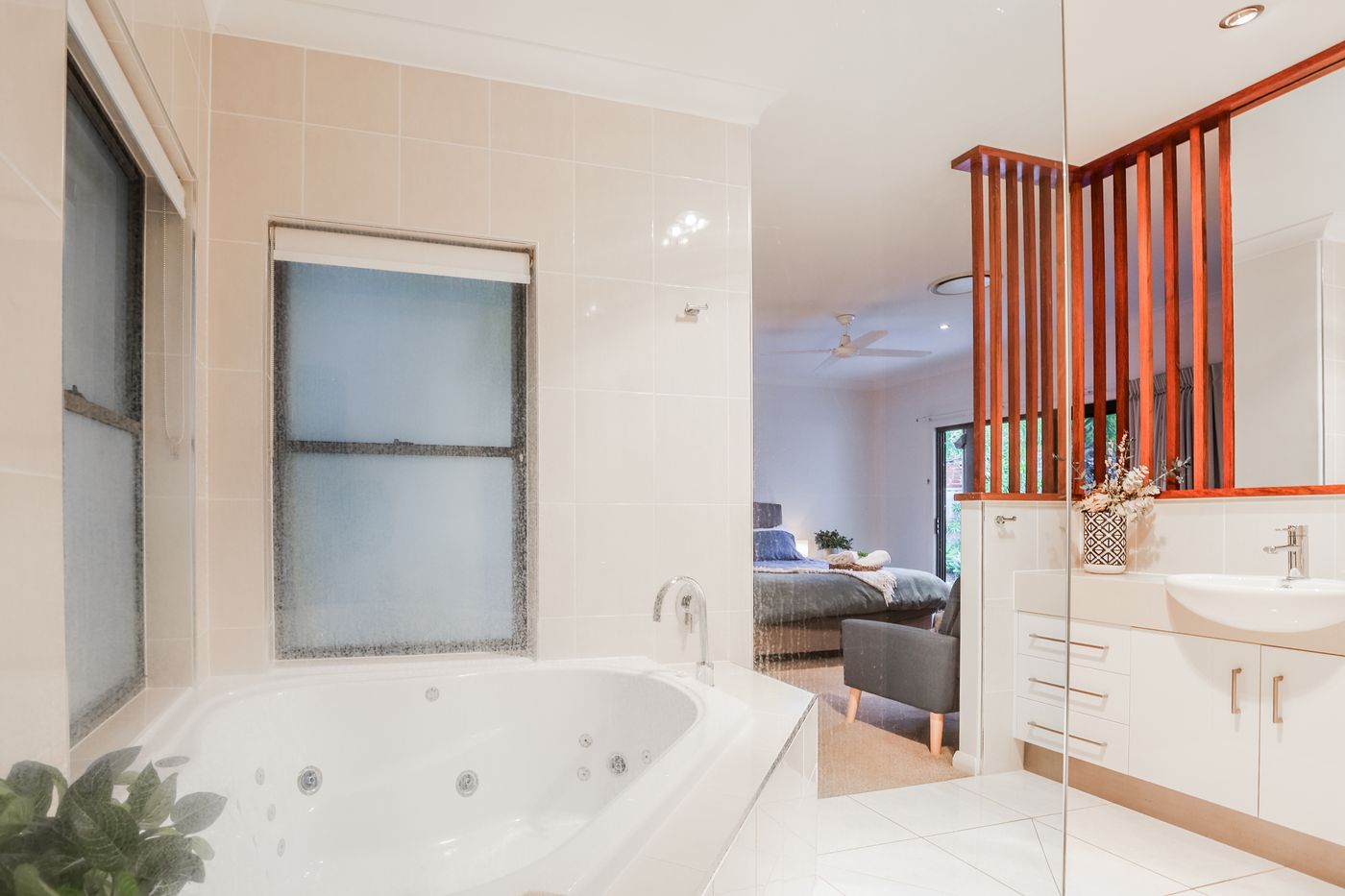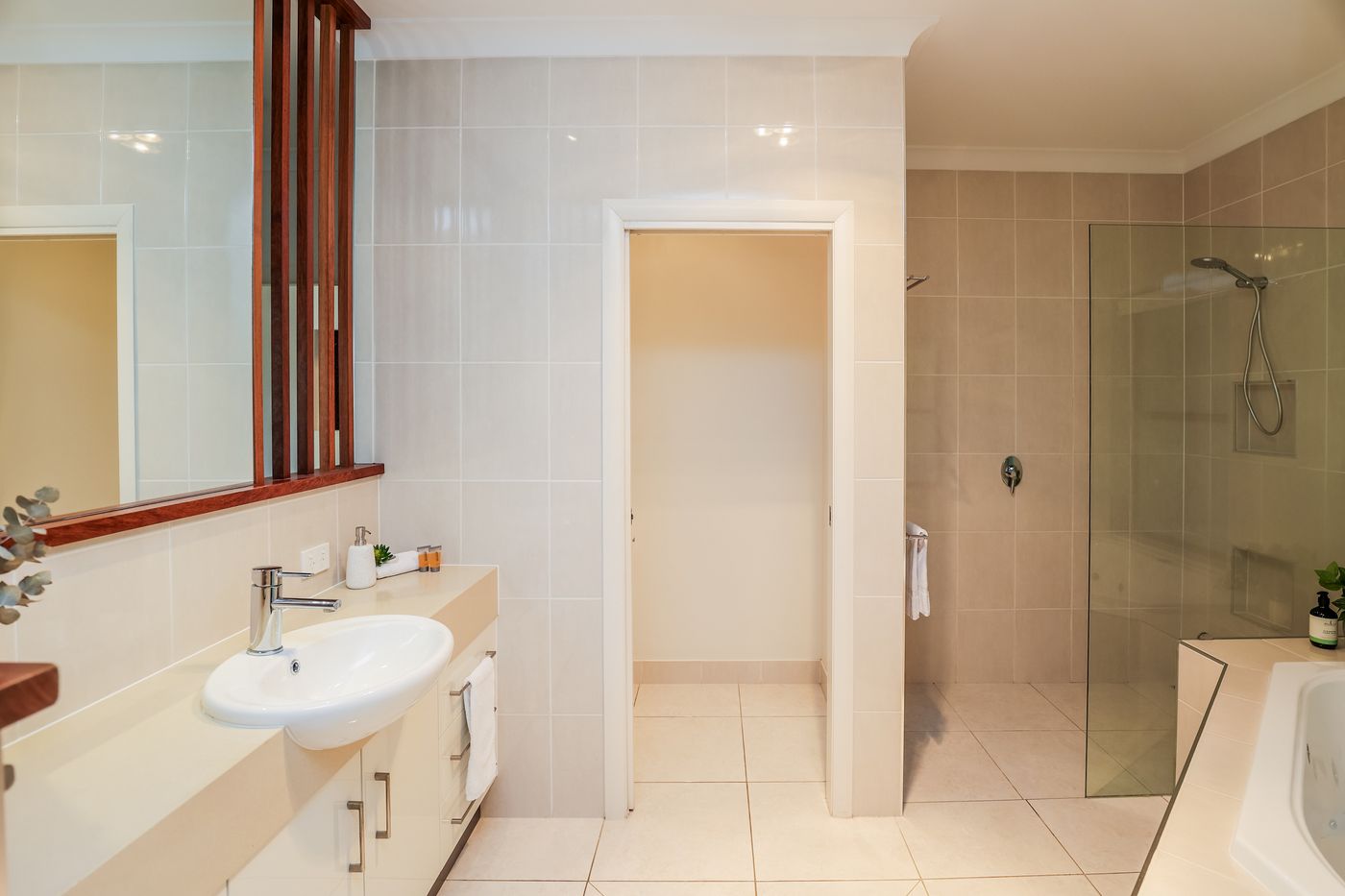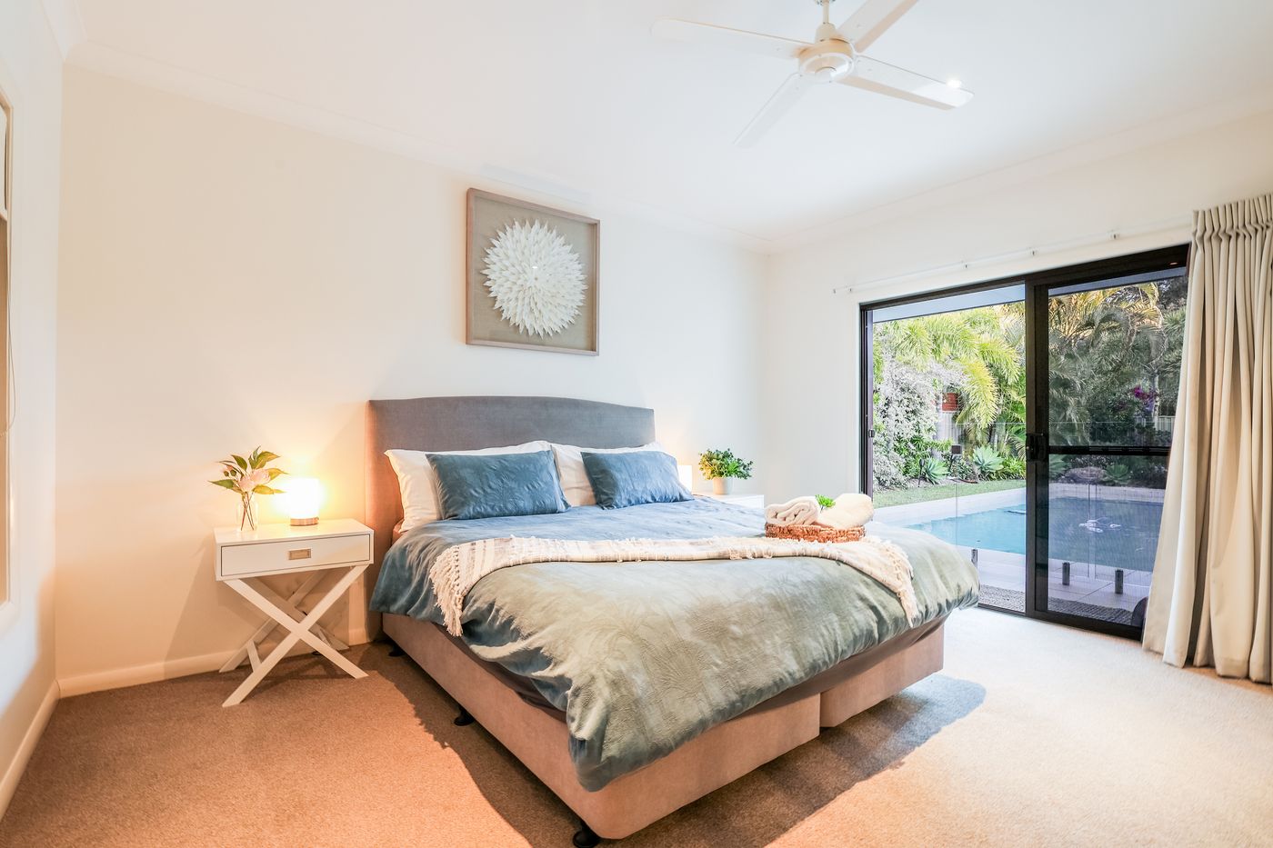 • Master bedroom - King Bed with linen TV, air-con, fans, private pool access, Ensuite with spa bath and shower